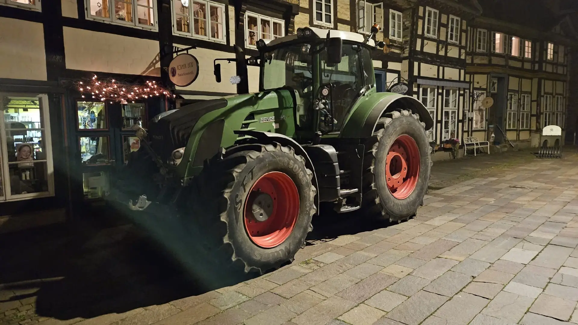 Was auf einem Dorfplatz üblich ist, kann in der Nienburger Innenstadt schon ganz anders aussehen. Und ob der Traktor das einzige Fahrzeug war, das zur Verfügung stand, ist nicht bekannt.