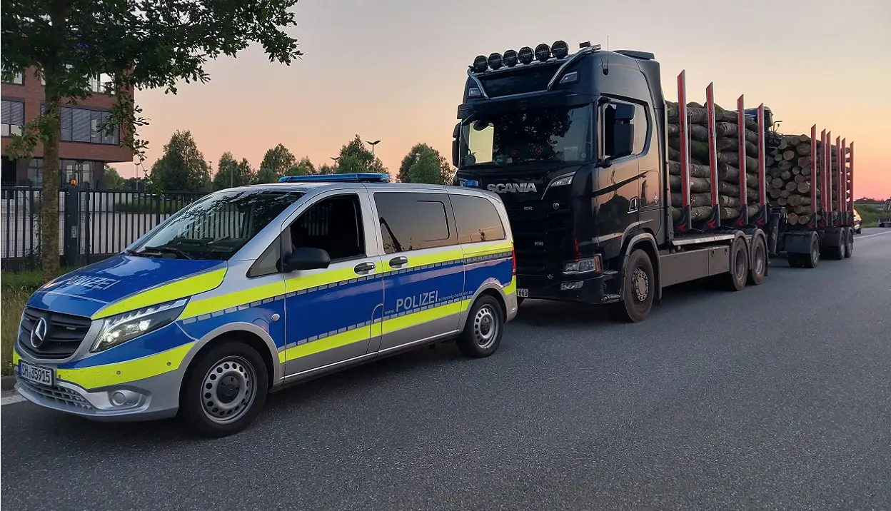 Als Beamte des Polizeiautobahn-und Bezirksreviers Neumünster auf der A7 Höhe Neumünster ein LKW-Gespann kontrollierten, staunten sie nicht schlecht. Das geladene Kurzholz war zwar ordnungsgemäß gesichert; aber die Beamten sahen schon auf den ersten Blick, dass dieses Gespann vermutlich überladen war.